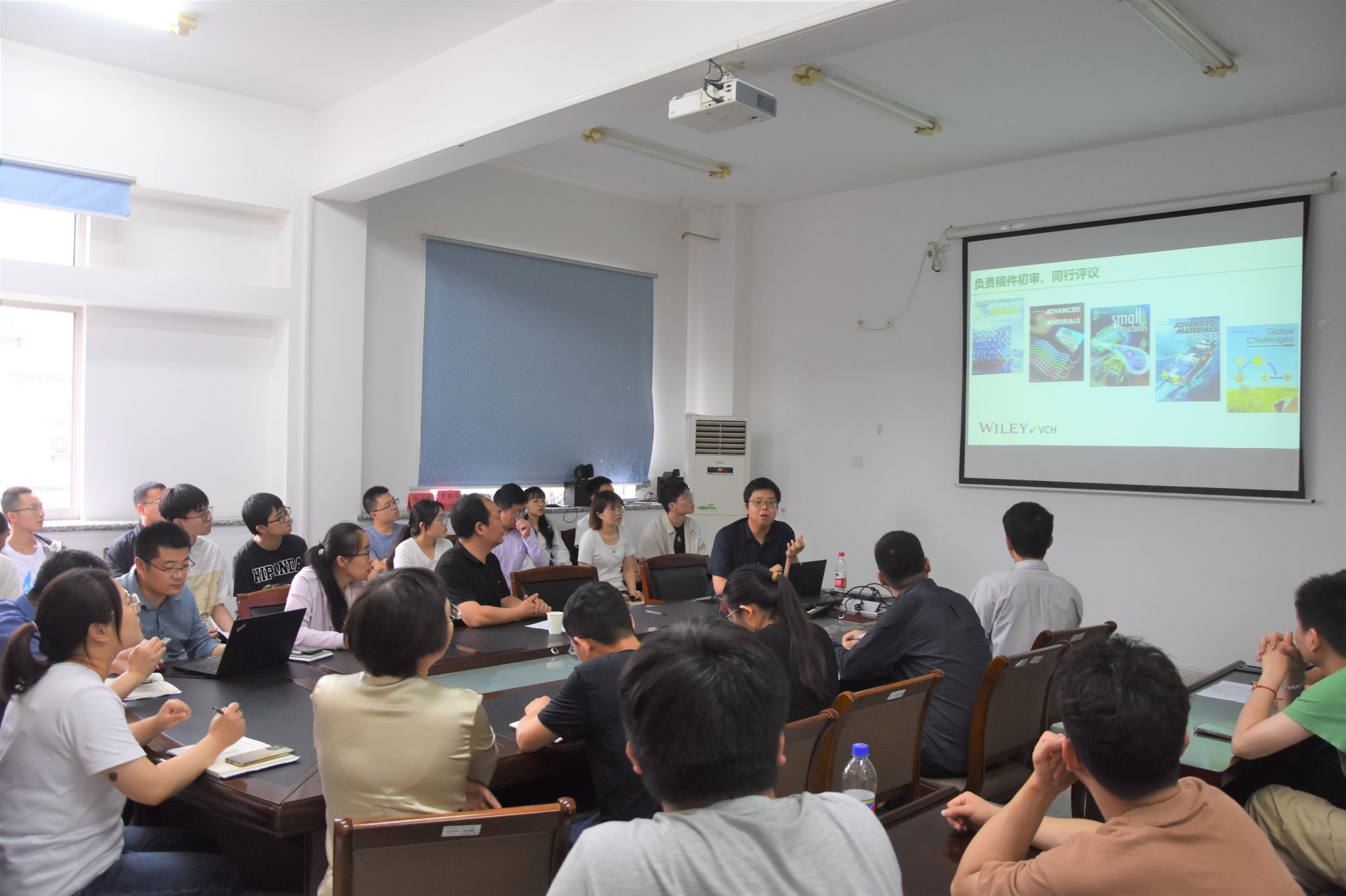 6月25日,在北校区知达楼B314必赢bwin线路检测中心会议室,Wiley上海办公室刘田宇博士应邀到必赢bwin线路检测中心作学术讲座。讲座由必赢bwin线路检测中心副院长罗驹华(主持工作)主持,必赢bwin线路检测中心、新型环保重点实验室、化学化工学院等部门师生60余人参加。
