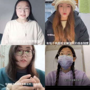 学院同时还开展了“微感言征文活动”和“微感言视频征集活动”,高子言同学这样写到“治国凭圭臬,安邦靠准绳。当今社会,宪法是公民权利的保障书。我们走在一条宪法之光普照的大路上,宪法让前路不再黑暗,让每一天都充满希望。”,王佳敏通过短视频的形式来宣传宪法知识,号召大家要把宪法放在心中,维护宪法权威,让宪法之光照耀中华民族每一寸土地。