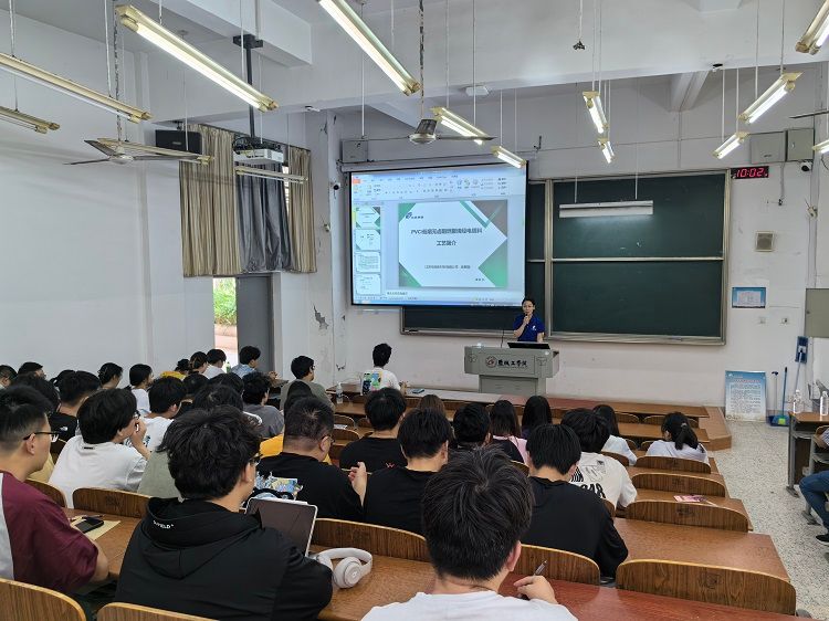 袁柳淑围绕PVC/低烟无卤阻燃聚烯烃电缆料具体生产工艺、如何针对客户不同需求实现产品个性化定制、如何解决生产过程中出现的工艺问题等三个方面进行详细讲解。最后,结合自身成长经历告诉同学们如何沉下心来做应用型的研究,从而为低烟无卤阻燃电缆料等高分子材料领域服务,助力国产高分子材料领域科技自立自强。本次授课是《高分子材料成型加工》产教融合课程中相关知识的具体实施案例,也是高分子材料与工程专业《毕业实习》中的一个主要实习工艺,该讲座的开展拓宽了学生的视野和提升了学生的工程素质,为其将来的学习和工作打下了良好的基础。