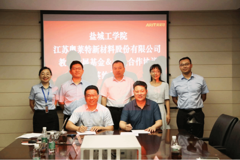 为深化产教融合,创新人才培养模式,拓宽学生实习和就业渠道,6月29日,必赢bwin线路检测中心党委书记唐浩、吴其胜教授等一行三人赴江苏奥莱特新材料股份有限公司开展校企合作签约仪式。江苏奥莱特新材料股份有限公司总经理郑春扬、技术总监李伟、人力资源经理夏玲莉等参加签约仪式。