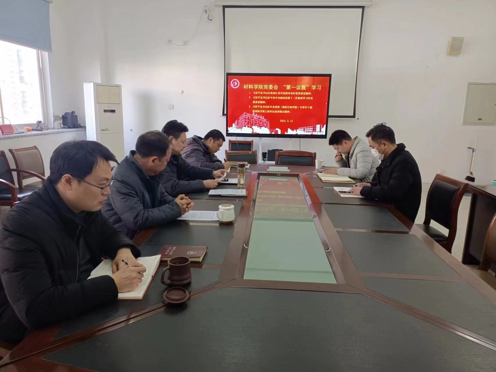 3月13日上午,在知达楼B314会议室,必赢bwin线路检测中心党委会以“第一议题”形式,认真学习习近平总书记在参加江苏代表团审议时、在中共中央政治局第十二次集体学习时、在中央党校(国家行政学院)中青年干部培训班开班之际作的重要讲话重要指示精神。学院党委书记唐浩主持会议,全体党委委员参加。