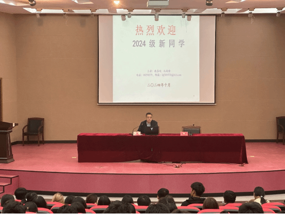 为促进我院2024级本科新生更好地适应大学生活,合理规划学业发展,10月17日晚在盐城工学院北校区五四报告厅,教务处副处长孔剑锋作“学籍管理教育”专题讲座。学院党委副书记温崇明出席,新生辅导员和全体2024级本科新生参加会议,学院团委副书记袁梅主持。