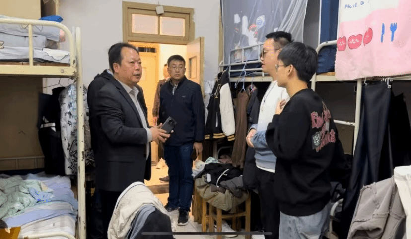走访过程中,领导老师与同学们进行了亲切的交谈。唐浩指出学校正在接受教育部本科教育教学评估,要求同学们要以积极向上的精神风貌和高度的责任感参与本次评估工作,为学校高质量发展作出自己应有的贡献。同时,询问了解同学们的学习生活情况和精神状态,并对同学们的需求和困惑逐一答复,鼓励同学们要保持良好的生活习惯和积极的心态。罗驹华强调同学们要注意防火、防盗、防骗,确保人身及财产安全,注意饮食卫生安全,希望同学们能够遵守宿舍管理规定,保持宿舍通风和整洁,共同营造和谐、温馨的宿舍环境。随后,院领导和辅导员老师们重点关注了各年级学生当前的学习情况,围绕学风建设提出了一些学习规划建议,希望同学们能够克服慵懒麻痹思想,以青春之姿、奋斗之态投入到日常的学习生活中去。