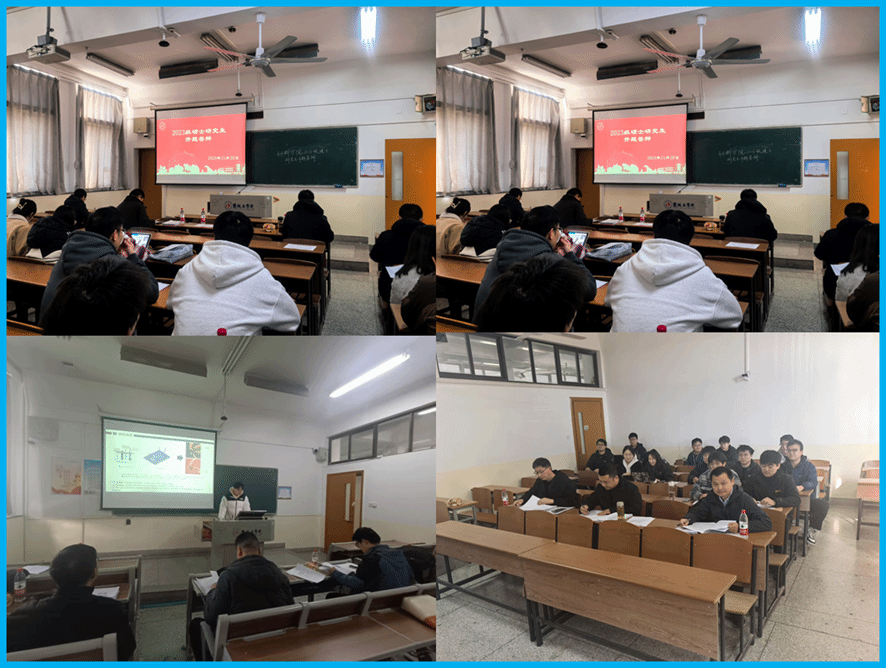 硕士学位论文开题答辩是一个对学位论文质量进行管理和监控的重要环节。本次开题答辩激发了研究生对课题更全面、更深入思考的兴趣,深刻的了解了自己研究存在的不足和需要加强的地方,明确了毕业论文的努力方向,为学院后续研究生学位论文工作和人才培养的顺利开展奠定了坚实的基础。