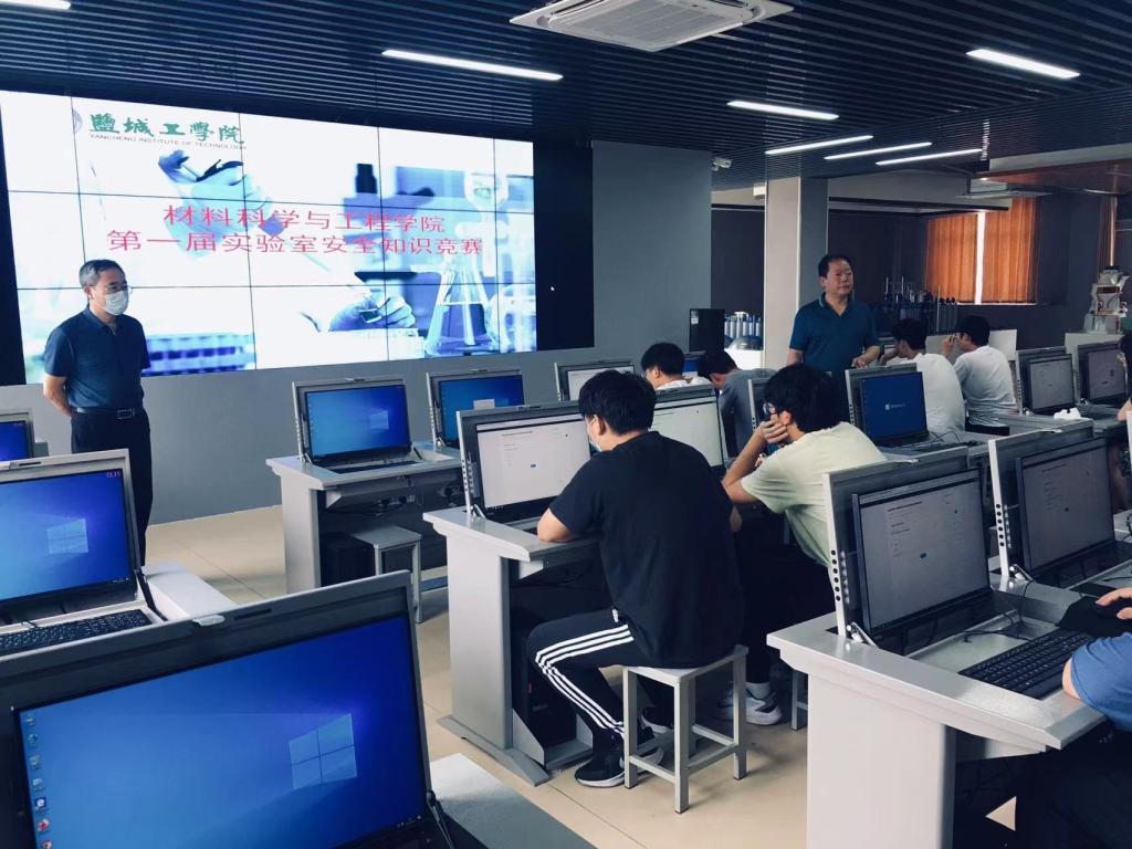 为进一步提升学院师生实验室安全意识、建立实验室安全工作长效机制,牢固树立安全发展理念,强化大学生安全防范意识,普及实验室安全知识,增强自我保护能力,营造安全、舒适、和谐的实验室环境,提升实验室安全管理和实验教学工作水平。根据实验室建设与设备管理处《关于开展盐城工学院第二届实验室安全文明月活动的通知》,6月10日下午,必赢bwin线路检测中心在建军东路校区知达楼虚拟仿真实验室举办了“必赢bwin线路检测中心第一届实验室安全知识竞赛”暨“盐城工学院第二届实验室安全知识竞赛”选拔赛。必赢bwin线路检测中心院长奚新国,副院长罗驹华出席本次活动。